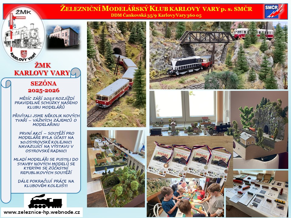 ŽÁCI MAJÍ MOŽNOST VYZKOUŠET SI ZRUČNOST - SVOU VLASTNÍ TVOŘIVOST. ZAMĚŘUJEME SE NA PRÁCI S RŮZNÝMI MATERIÁLY - POZNÁNÍ ŽELEZNICE MODELOVÉ I TÉ SKUTEČNÉ. VELICE VÍTANOU AKCÍ A ZÚROČENÍ CELOROČNÍ PRÁCE JE SOUTĚŽ PRO TYTO NEJMLADŠÍ MODELÁŘE POD NÁZVEM PŘEBOR KARLOVARSKÉHO KRAJE. ZDE SE ŽÁCI OCITNOU VE SVĚTĚ MODELOVÉ ŽELEZNICE - SOUTĚŽE SLOŽENÉ Z KVÍZU - TVORBY VLASTNÍHO MODELU A JÍZDY NA SOUTĚŽNÍM KOLEJIŠTI.